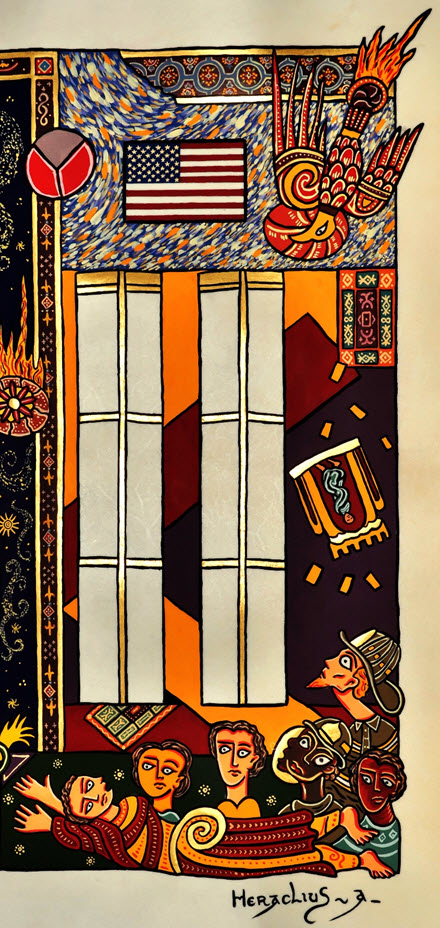 My Master taught me the laws of nutrition and of sleep as well as the traditional knowledge he possessed, from symbolism to sacred texts, from the art of colors to the art of geometry. He explained to me that illuminators, like the builders of cathedrals are geometers. On the parchment or on the ground, they draw a sacred space within which man can rise towards his Source, his Principle. The image is a reflection, a cosmos, and for my Master it is a means to signpost the path for man’s metamorphoses.